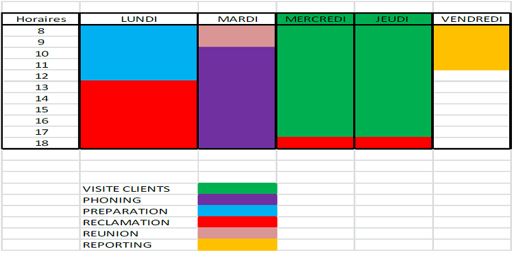 Voici mon planning Hebdomadaire comme je l’ai conçu au moment de mon PAC. Comme je le précise dans le mémoire, il a été modifié