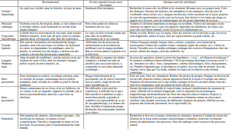 Retour au menu : « La théorie des intelligences multiples d’Howard Gardner » : Un nouveau regard sur la manière d’apprendre.