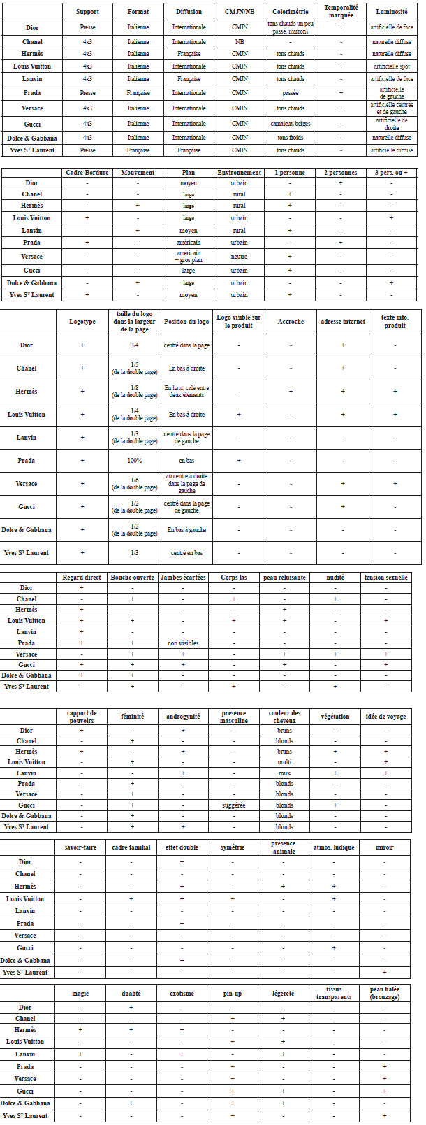 Page suivante : Annexe 3 : Tableaux de strates scéniques et iconiques printemps-été 2010