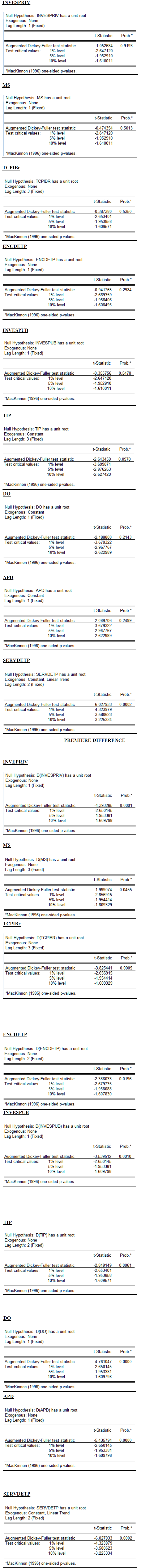 Page suivante : ANNEXE 5 : TEST DE COINTEGRATION DE JOHANSEN