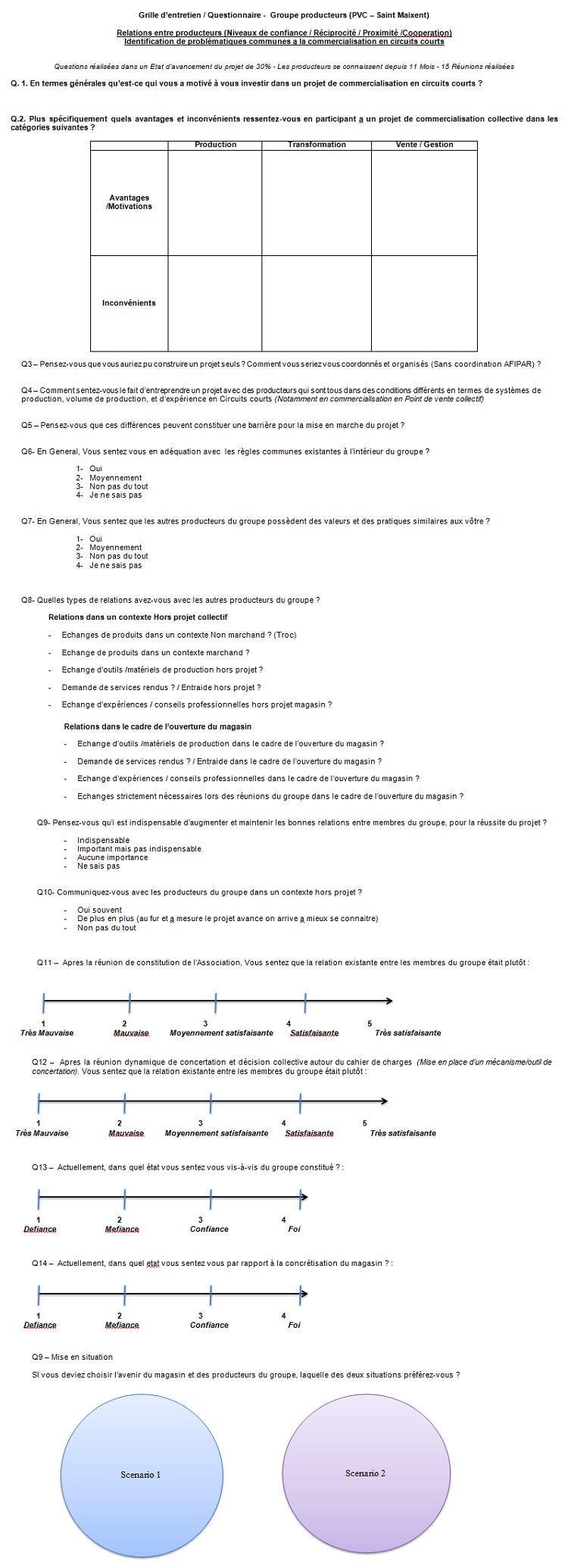 Annexe 5 : Grille d’entretien et Questionnaire conduits au sein du groupe des producteurs admin 12 ans ago Retour au menu : Construction de la proximité et renforcement des pratiques organisationnelles pour la commercialisation en circuits courts