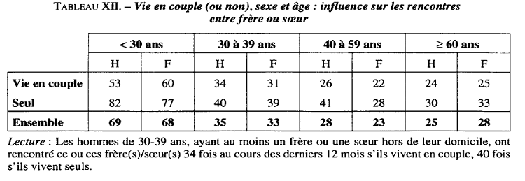 1- Fréquentations des frères et sœurs selon la situation de couple (242) :