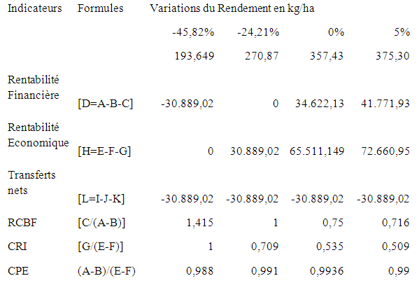 Tableau n°22 : Effet des variations du rendement à l’hectare sur les indicateurs de la MAP de la production.