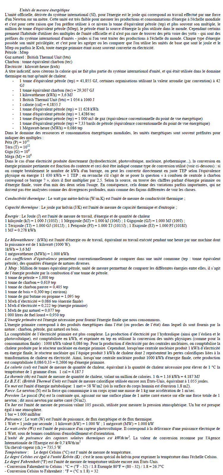 Annexe 7 : Définition des unités de mesure et de comptabilité énergetique admin 12 ans ago Page suivante : Annexe 8: Indicateurs du taux d’électrificationRetour au menu : STRATEGIE DE CROISSANCE DES UNITES TERRITORIALES DU CAMEROUN, PRODUCTION DECENTRALISEE D’ELECTRICITE
