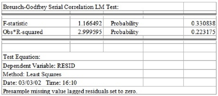 ANNEXE 7 : TEST D’AUTOCORRELATION DES RESIDUS DE LONG TERME admin 14 ans ago Retour au menu : Analyse des impacts des politiques budgétaire et commerciale sur la croissance économique au Bénin