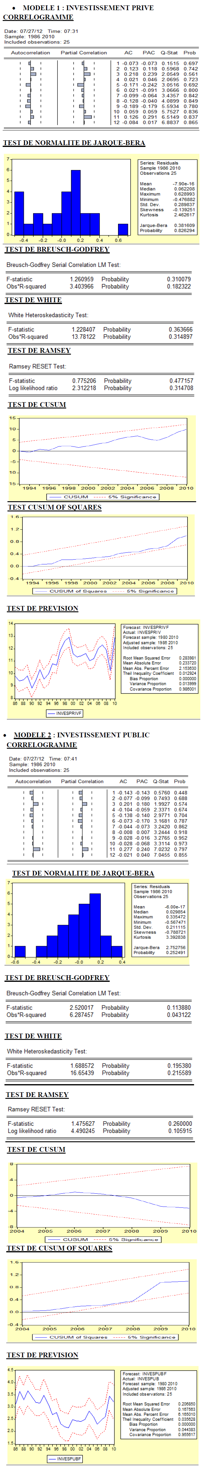 Page suivante : ANNEXE 8 : TEST DE STATIONNARITE SUR LES RESIDUS
