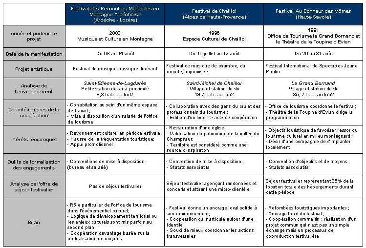 Annexe 8 – Tableau récapitulatif de l’étude comparative menée sur les trois festivals admin 13 ans ago Page suivante : Liste des personnes interrogéesRetour au menu : Professionnels du spectacle et professionnels du tourisme, quelles voies de rapprochement ? Enjeux, opportunités et limites des formes de coopération