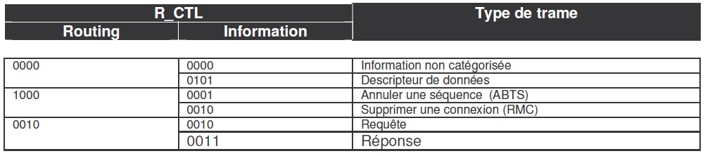 On le reconnaît par le contenu du champ R_CTL dont les bits 31 – 28 ont une valeur autre