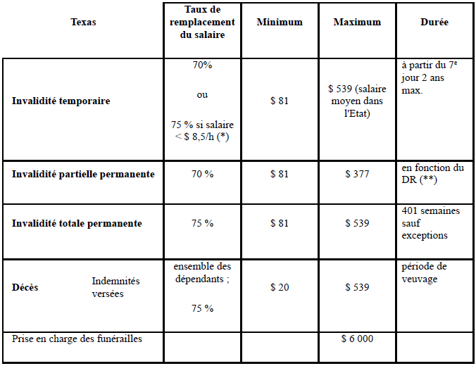 (**) À guérison maximale, entre 4 et 9 semaines d’indemnités sont versées pour chaque pourcentage de DR.