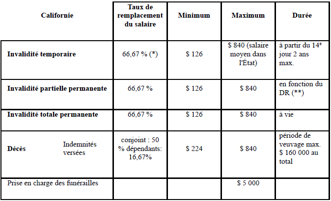 (**) A guérison maximale, entre 2 et 6 semaines d’indemnités sont versées pour chaque pourcentage de DR (2 semaines entre 1 et 10 %, 6 semaines au-delà de 21 %).