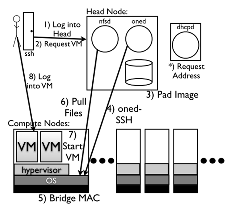 Figure E.2: Utilisation de machine virtuelle avec OpenNebula (Sempolinski et Thain, 2010).