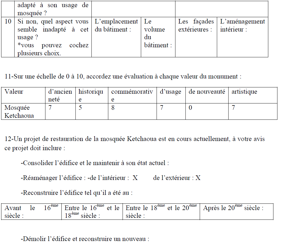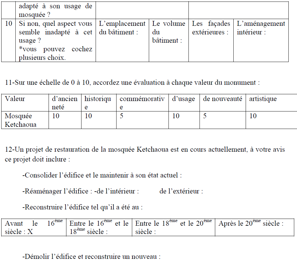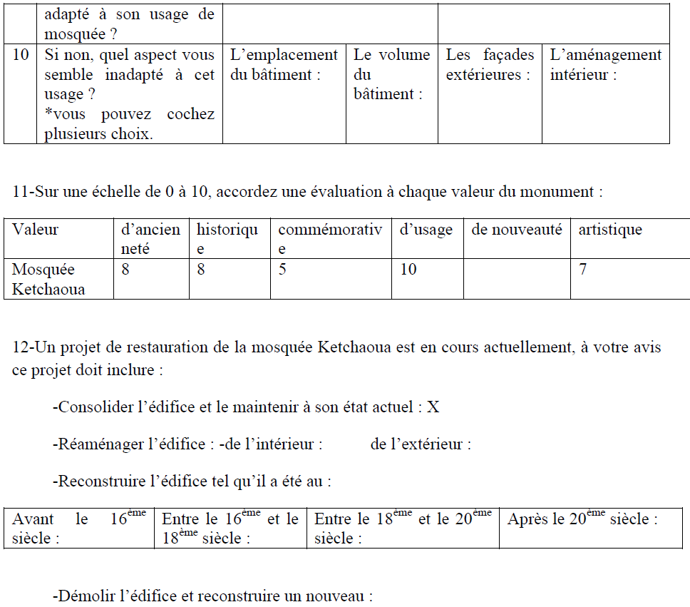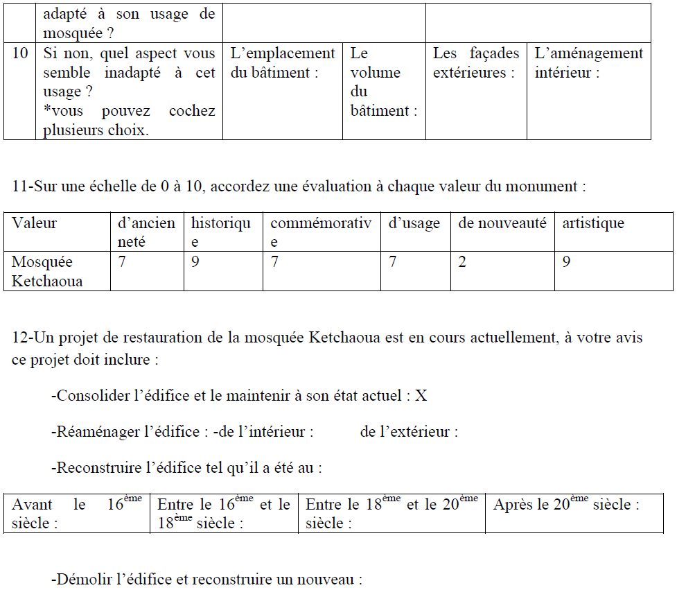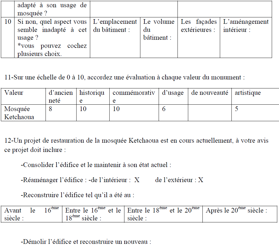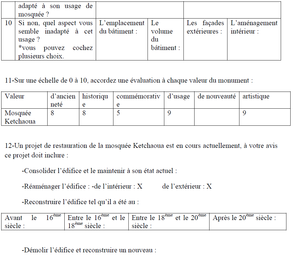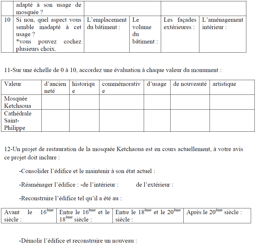 En raison de la courte durée de mon séjour à Alger, la distribution du questionnaire a été localisée essentiellement dans deux zones : à proximité de la mosquée Ketchaoua, et à l’école polytechnique d’architecture et d’urbanisme à Alger.