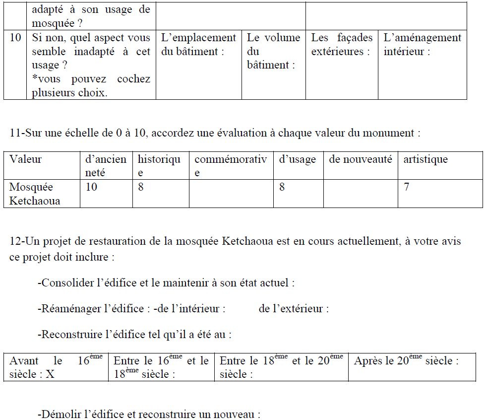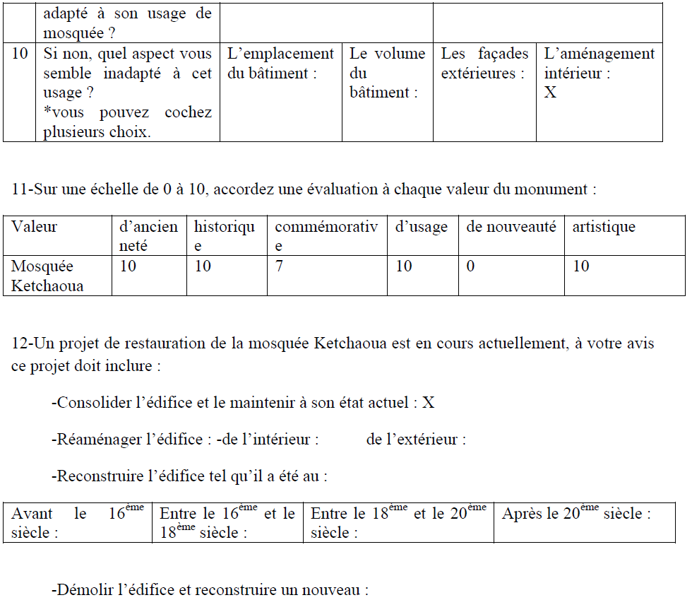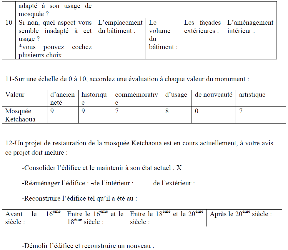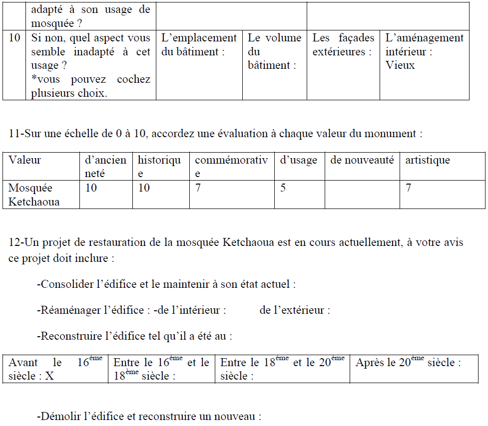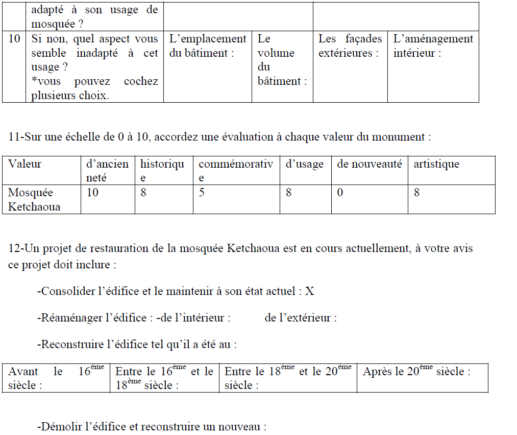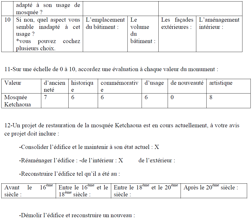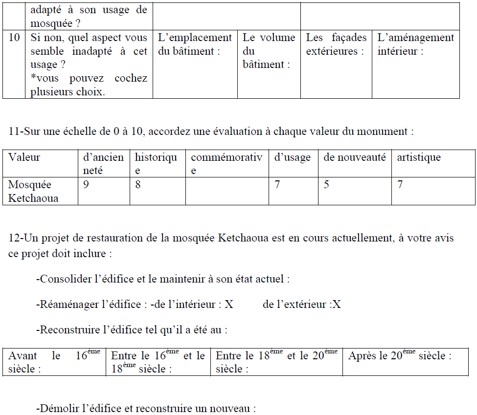 En raison de la courte durée de mon séjour à Alger, la distribution du questionnaire a été localisée essentiellement dans deux zones : à proximité de la mosquée Ketchaoua, et à l’école polytechnique d’architecture et d’urbanisme à Alger.