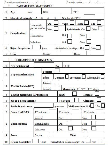 Annexe ACCOUCHEMENT DU SIEGE PAR VOIE BASSE ETUDE DE LA MORBI-MORTALITE MATERNELLE ET NEONATALE AUX CLINIQUES UNIVERSITAIRES DE LUBUMBASHI