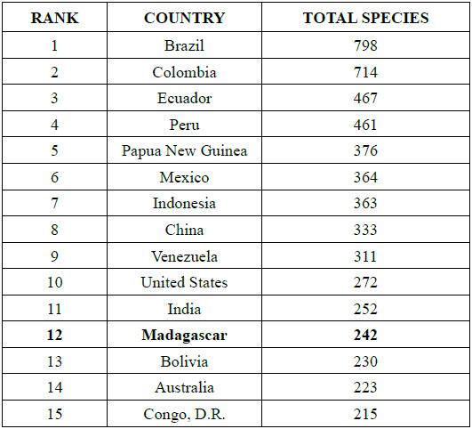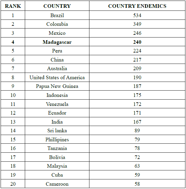 3) Classement des pays en fonction du nombre d’espèces endémiques d’amphibiens