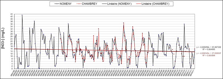 ANNEXE II : EVOLUTION DES TENEURS EN NITRATE DANS LES SECTEURS DU BASSIN VERSANT admin 12 ans ago – Secteur Amont – Secteur Petite Seille – Secteur Médian – Secteur Aval – Natura 2000 Page suivante : ANNEXE III : FIGURES COMPLEMENTAIRESRetour au menu : La Seille, gestion de la ressource en eau et pollution agricole : Influence des dispositifs agri-environnementaux territorialisés dans le bassin versant de la Seille