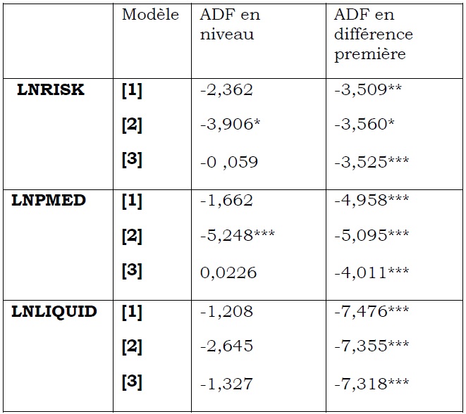 TABLEAU 2 : Tests de stationnarité des séries et des erreurs