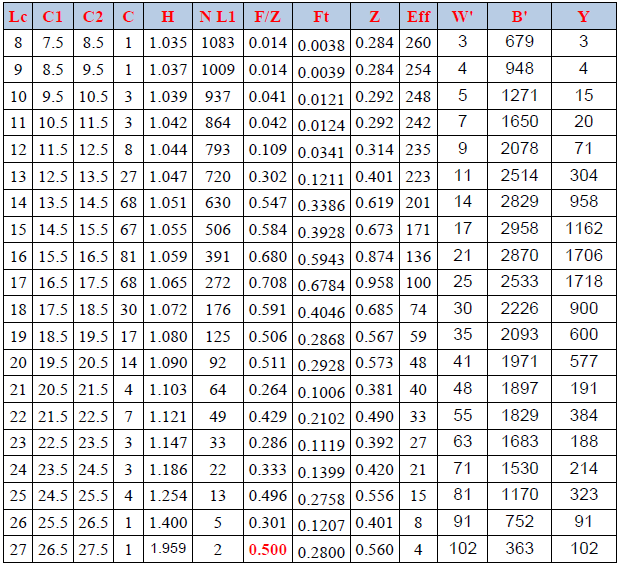 Tableau 5 : Résultats de l’analyse de cohorte de Jones(1984) fondée sur la longueur de C.linguatula