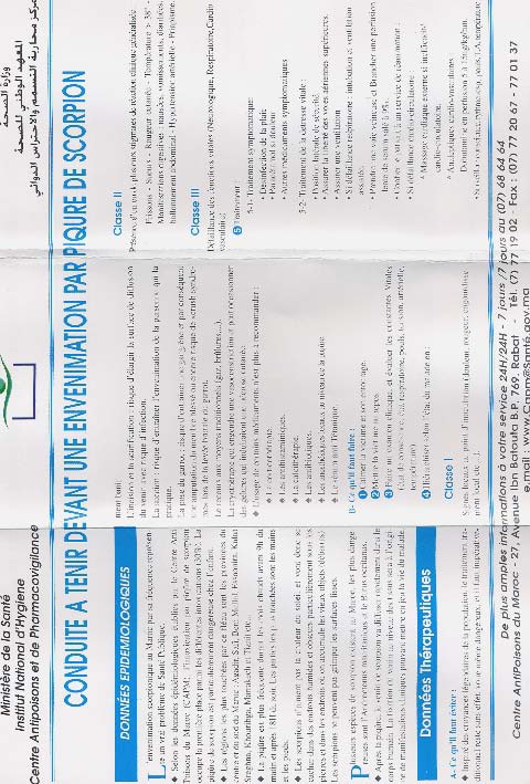 Annexe IV : Conduite à tenir devant une piqûre de scorpion admin 13 ans ago Page suivante : Annexe V : Missions de récolteRetour au menu : Scorpionisme, Epidémiologie et Facteurs de Risque au Maroc : cas de la province de Khouribga