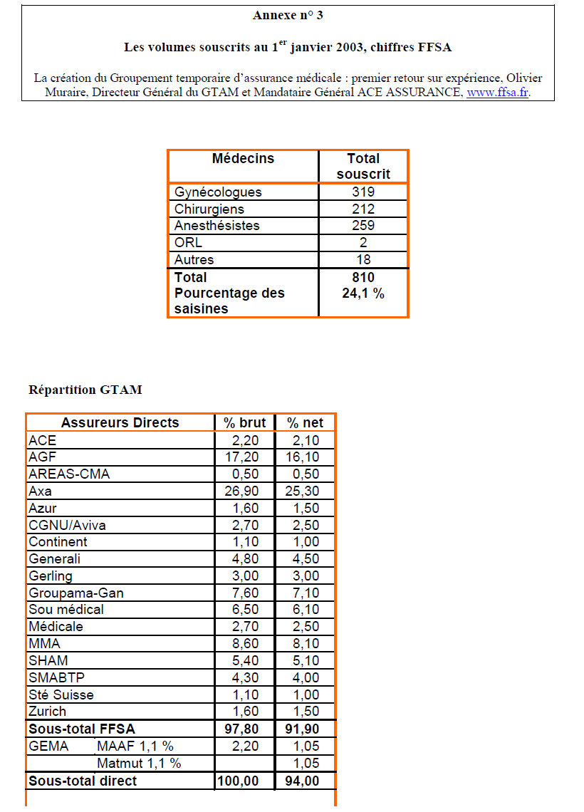 Annexe 3 L’assurance des professions médicales à risque  Le cas des anesthésistes, chirurgiens et gynécologues-obstétriciens