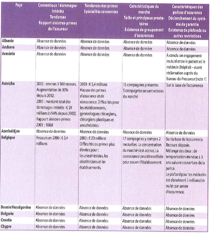 Retour au menu : L’assurance des professions médicales à risque : Le cas des anesthésistes, chirurgiens et gynécologues-obstétriciens