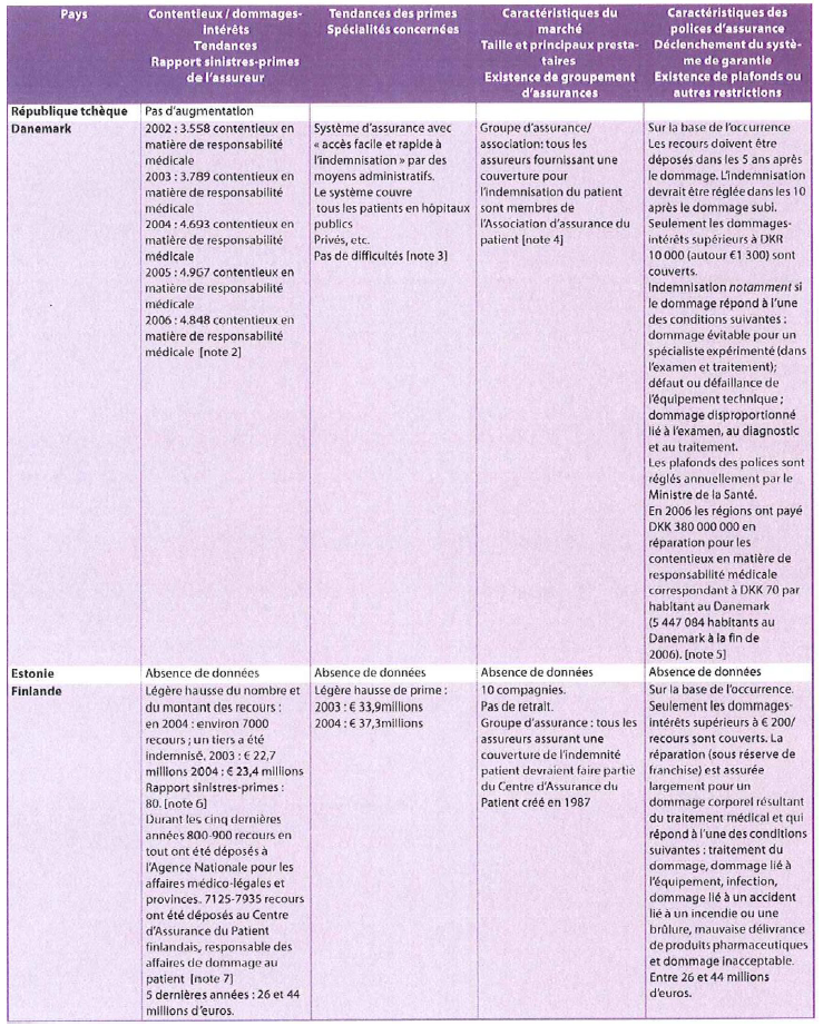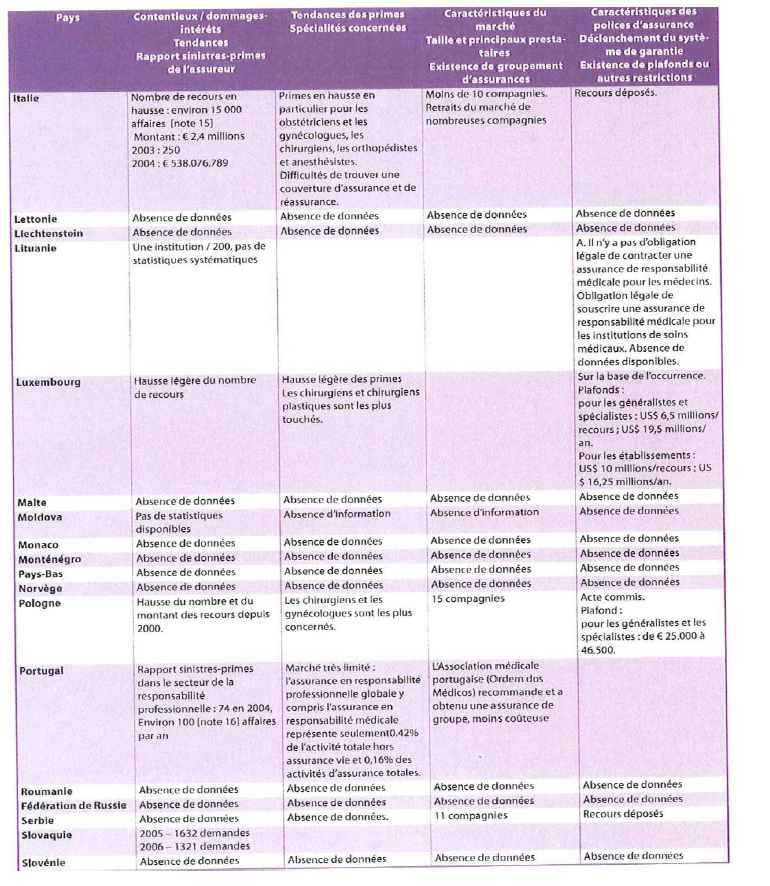Annexe n°14 : Les aspects de la responsabilité civile médicale dans les Etats membres du Conseil de l’Europe