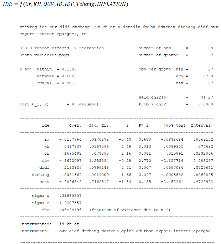 – Estimation de l’impact de l’investissement direct étranger sur la croissance
