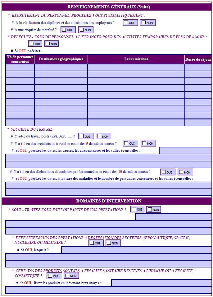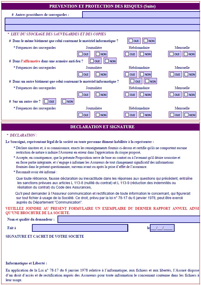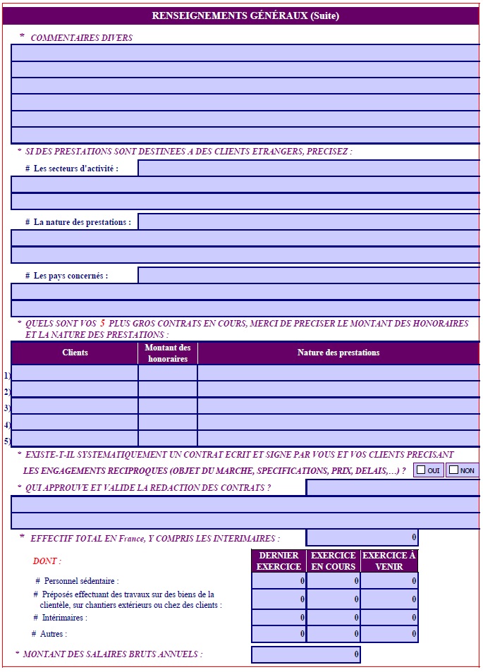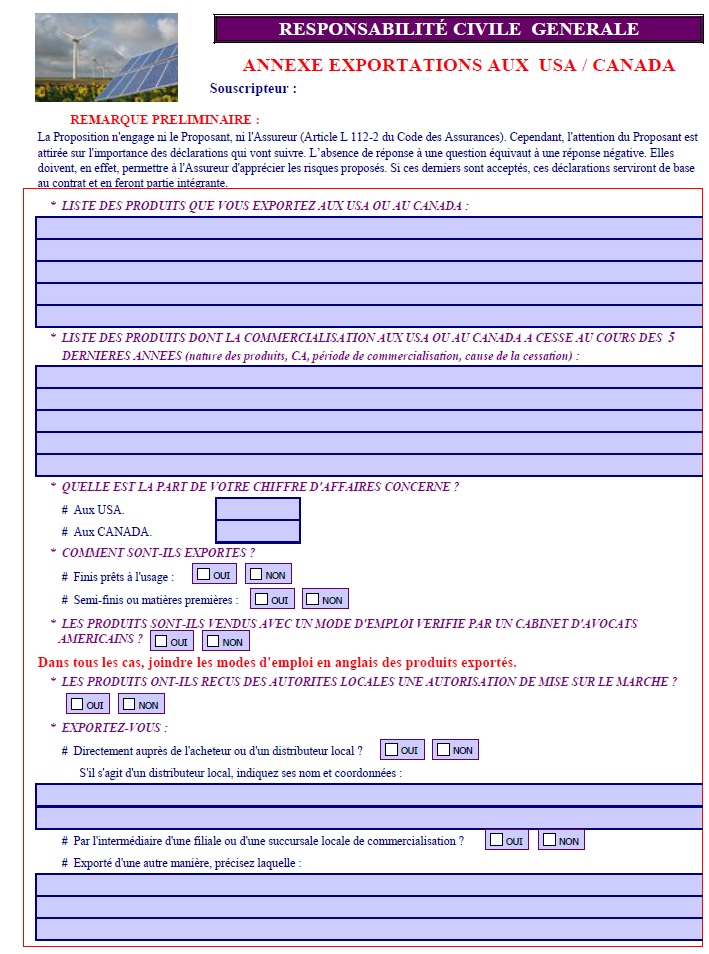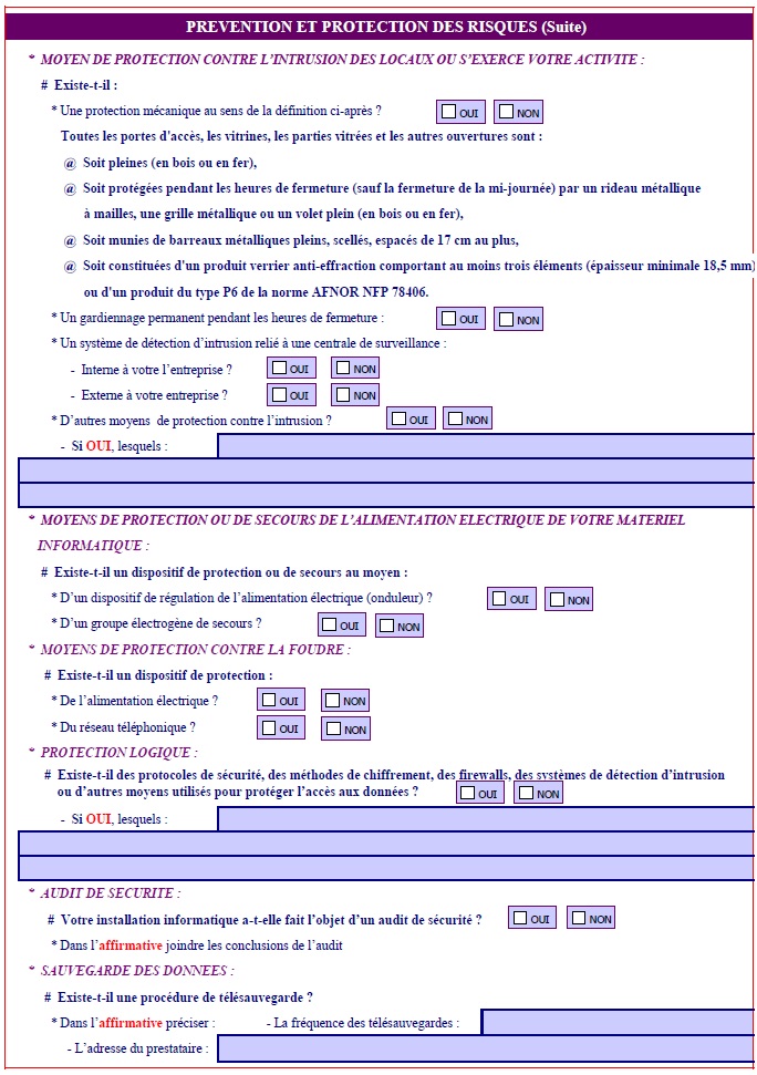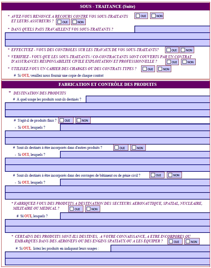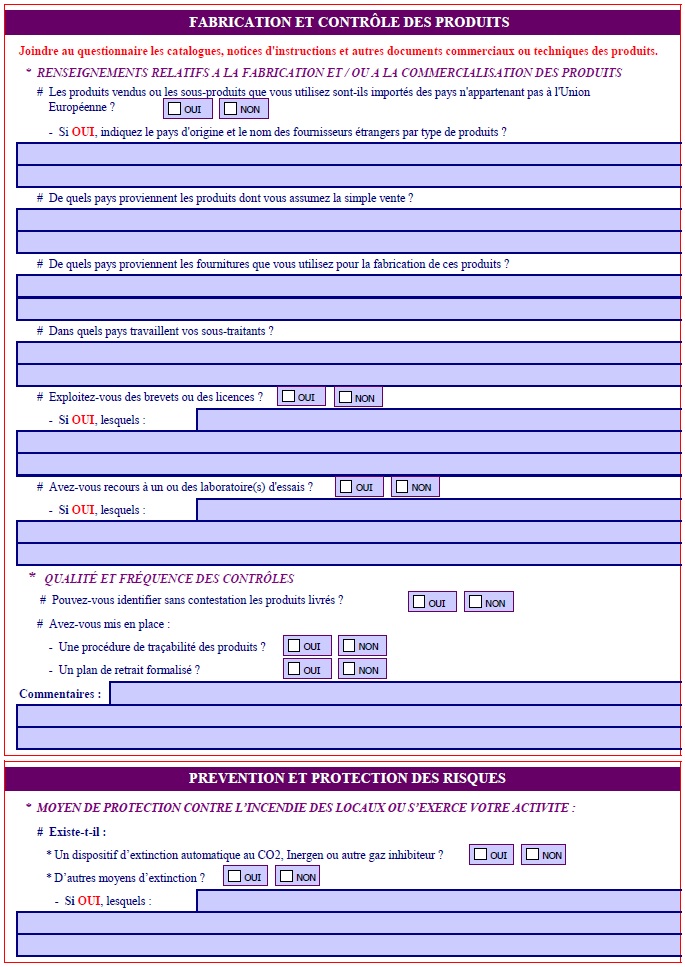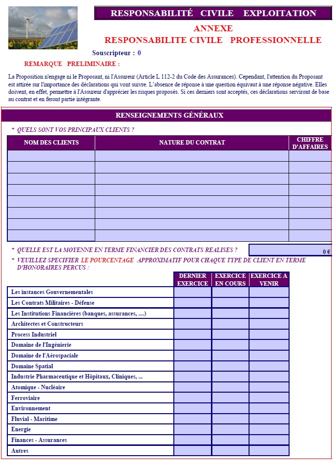 Questionnaire de Gras Savoye pour la prise de garantie en responsabilité civile générale