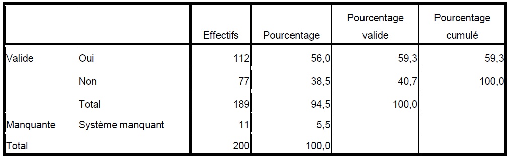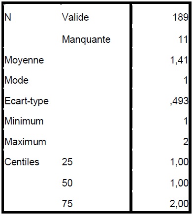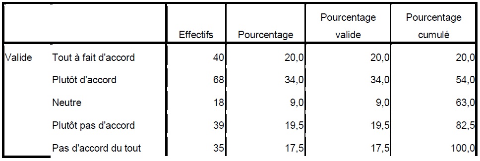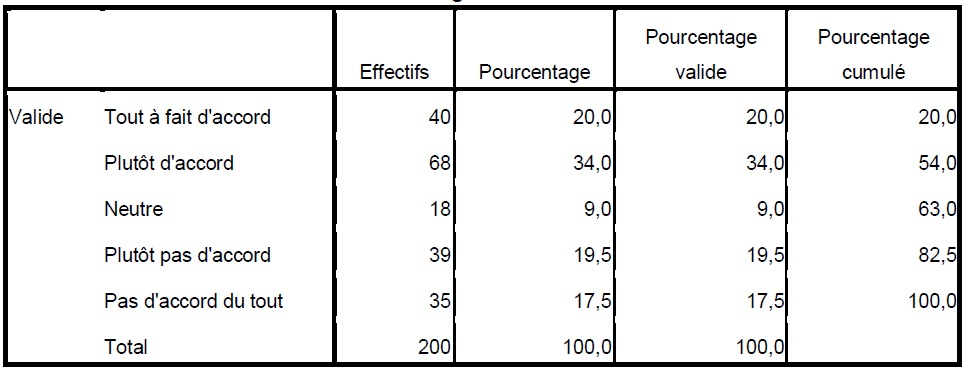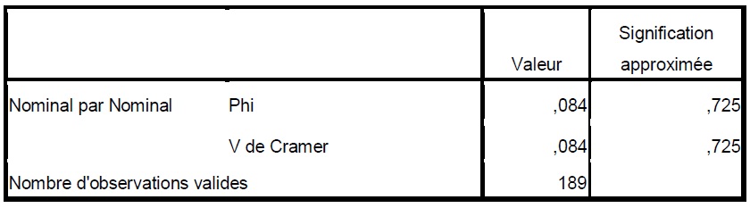 a. 0 cellules (,0%) ont un effectif théorique inférieur à 5.
