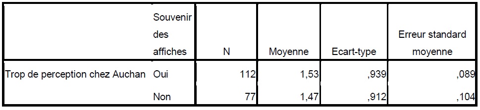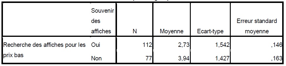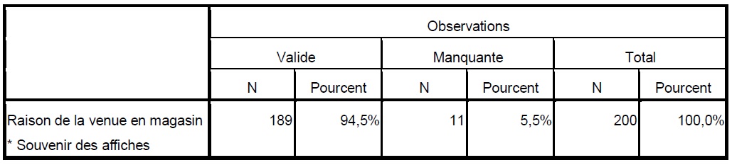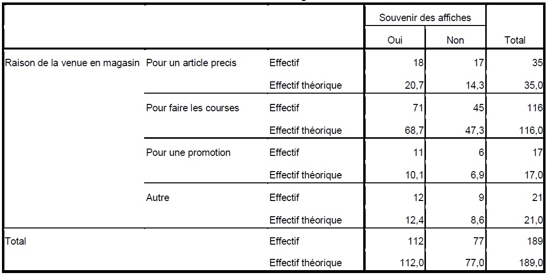 Tableau croisé Raison de la venue en magasin * Souvenir des affiches