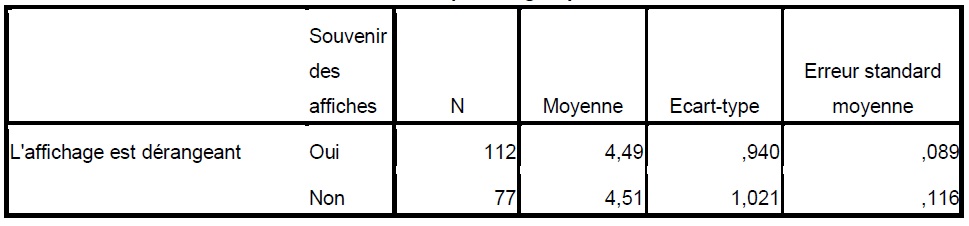 Tableau croisé Raison de la venue en magasin * Souvenir des affiches
