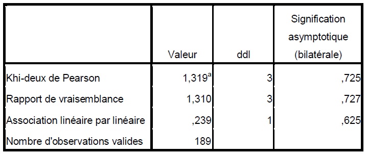 a. 0 cellules (,0%) ont un effectif théorique inférieur à 5.