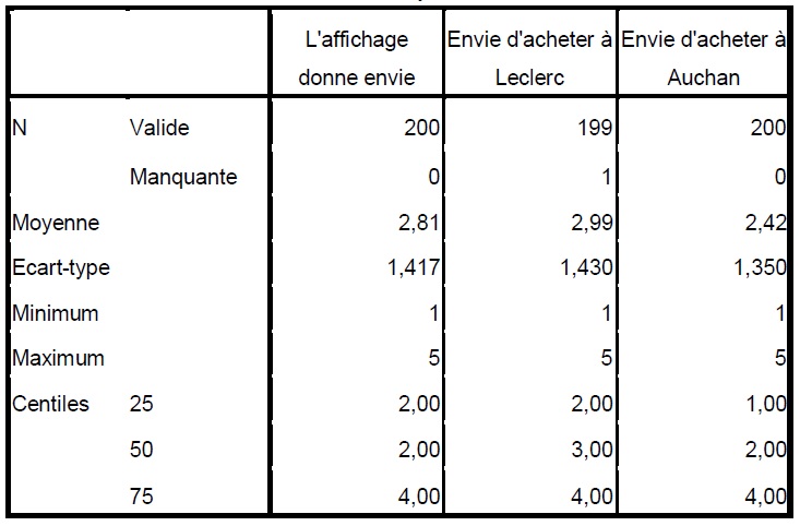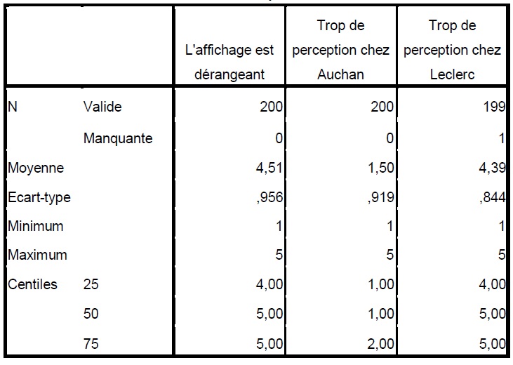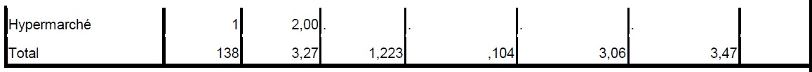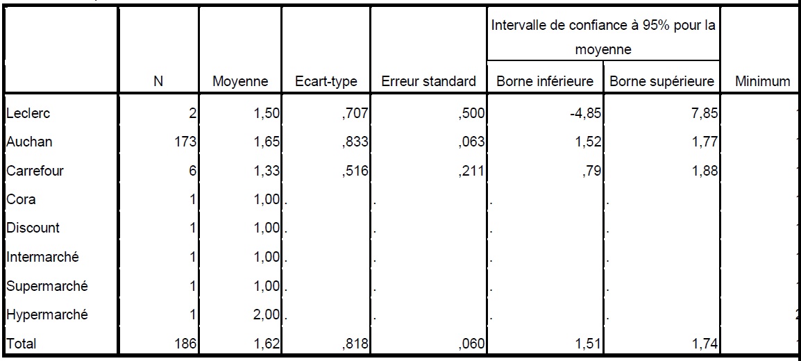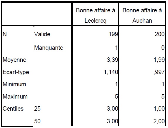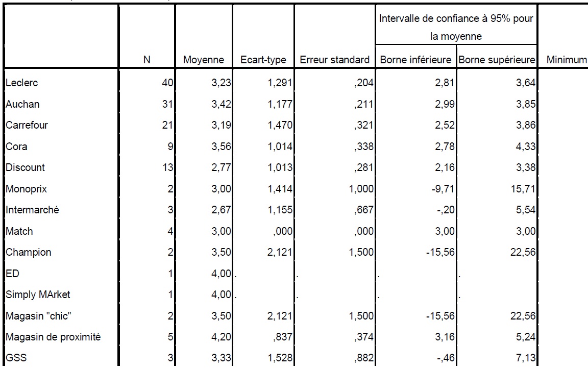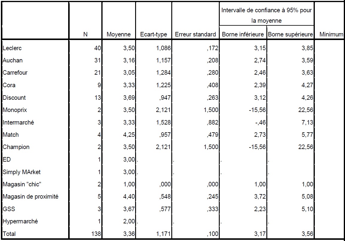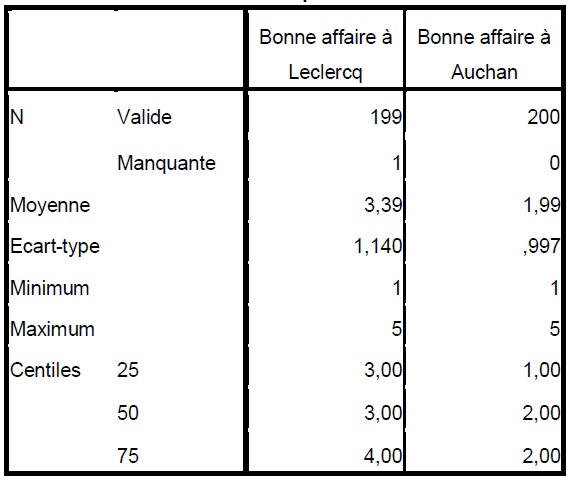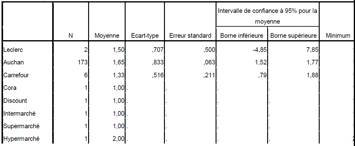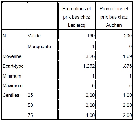 a. Les groupes avec une seule observation sont ignorés lors du calcul du test d’homogénéité de variance pour Promotions et prix bas chez Leclercq.