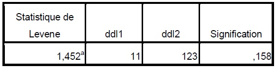a. Les groupes avec une seule observation sont ignorés lors du calcul du test d’homogénéité de variance pour Bonne affaire à Leclercq.