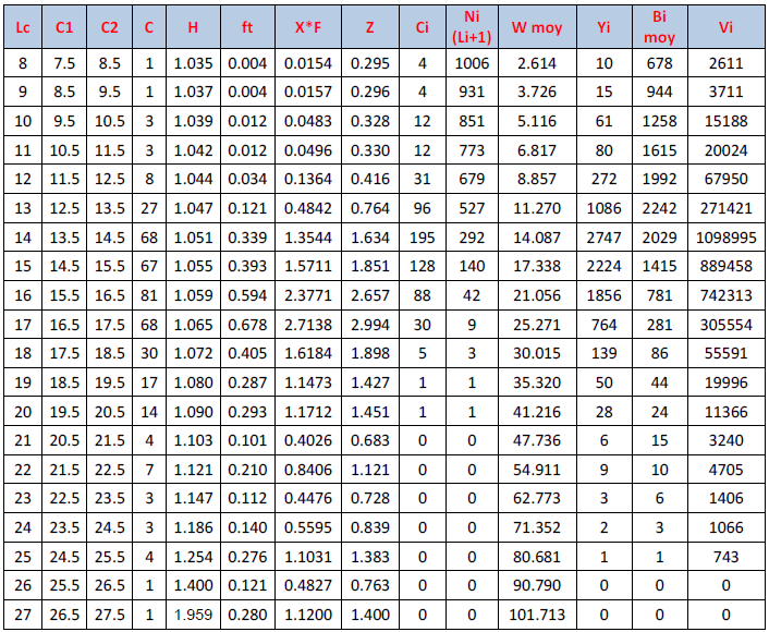 Tableau 9 : Résultats de l’analyse du modèle de Thompson et Bell (1934) fondé sur la longueur de C.linguatula (X=4)