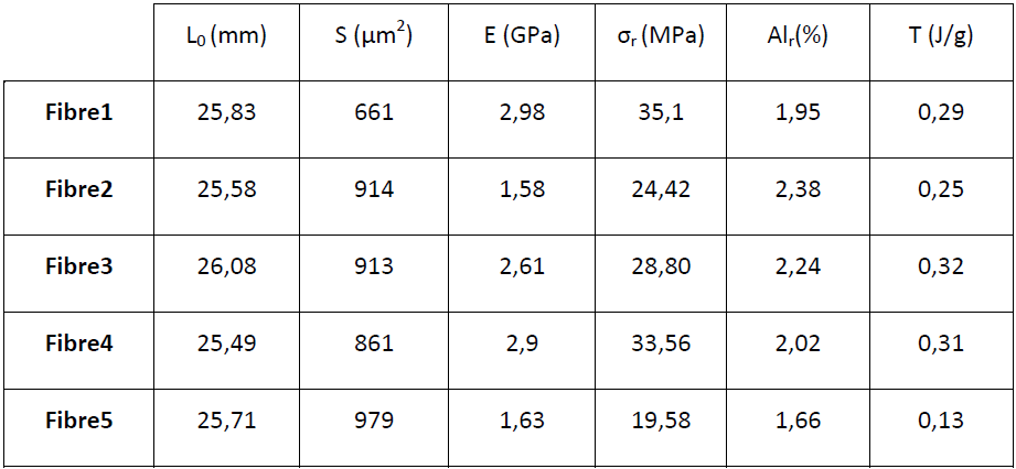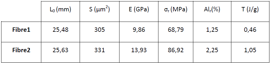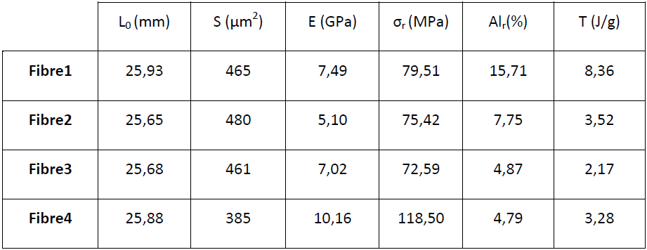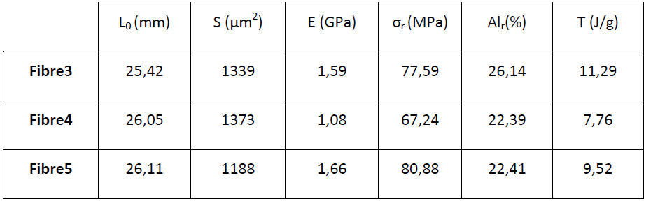 *Essais sur des fibres multibrins non recuites obtenues à partir des solutions Hipco (50ml/h et 50trs/mn)