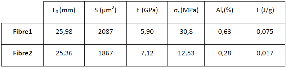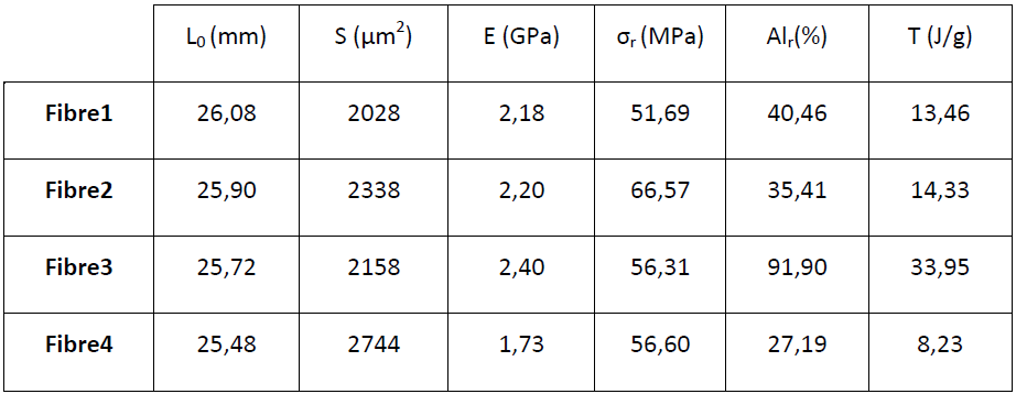 *Essais sur des fibres multibrins non recuites obtenues à partir des solutions Hipco (50ml/h et 50trs/mn)