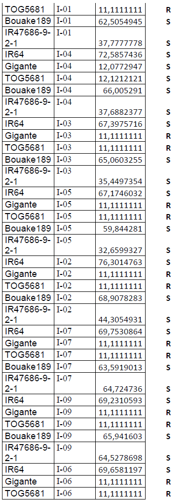 Retour au menu : DIVERSITES SEROLOGIQUE ET PATHOGENIQUE DES ISOLATS DU VIRUS DE LA PANACHURE JAUNE DU RIZ (RYMV) AU SUD –BENIN (LOCALITES DE DANGBO, LOKOSSA ET CALAVI)