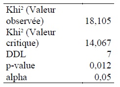 Etant donné que la p-value calculée est infér ieure au niv eau de sign ification alp ha=0,05, on doit rejeter l’hypothèse alternative Ha.