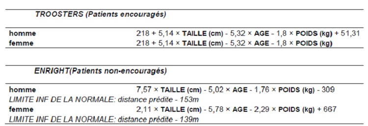 ANNEXE 5 : Equations prédictives selon Enright et Troosters. [30,31]