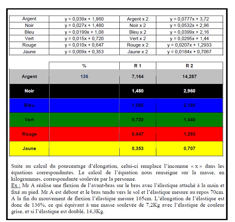 ANNEXE 8 : Méthode de calcul de la masse soulevé par l’individu en fonction de l’élongation et l’élastique et de sa couleur.