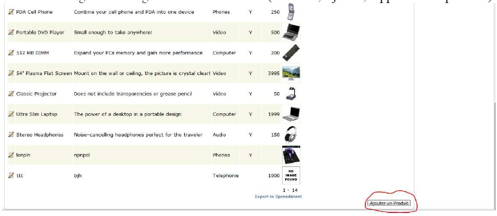 – Affichage du catalogue coté administrateur (Modifier, Ajouter,Supprimer, des produits)