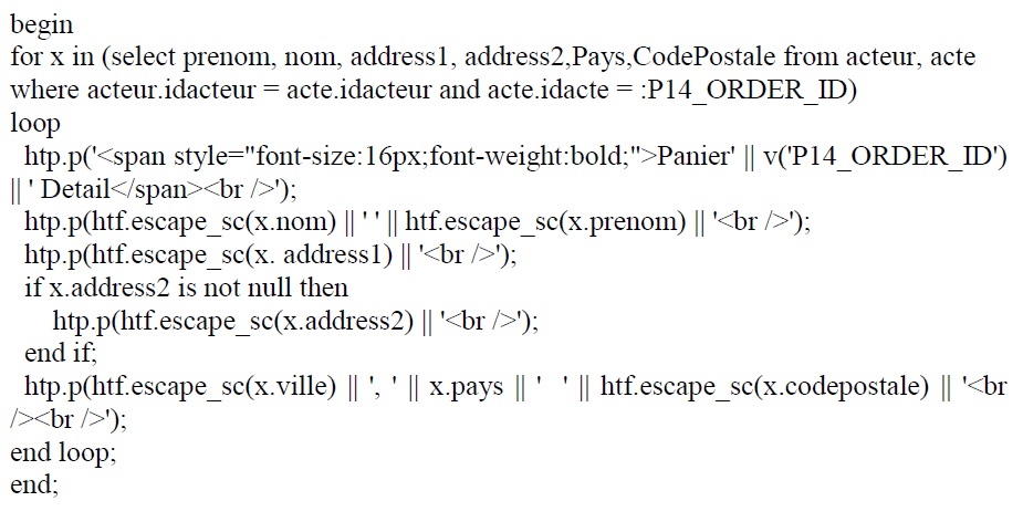 - Code PL/SQL permettant d’afficher les détails de la commande d’un client.
