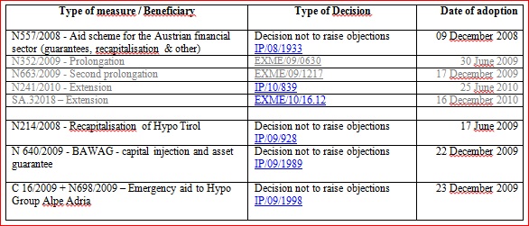 Source : State aid: Overview of national measures adopted as a response to the financial/economic crisis, MEMO/11/68, février 2011 disponible sur : http://europa.eu/rapid/pressReleasesAction.do?reference=MEMO/11/68&type=HTML
