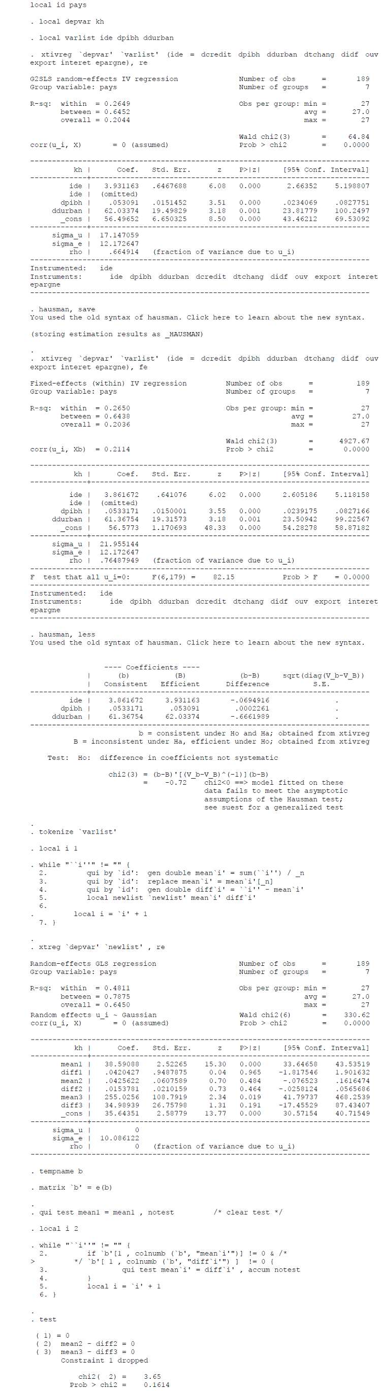 Annexes n°3 : Test de spécification de Hausman généralisé pour la variable KH admin 12 ans ago Page suivante : Annexe n°4 : Evolution comparée de la croissance économique et des entrées d’IDERetour au menu : LES INVESTISSEMENTS DIRECTS ETRANGERS DANS L’ESPACE UEMOA : DETERMINANTS ET ANALYSE D’IMPACTS