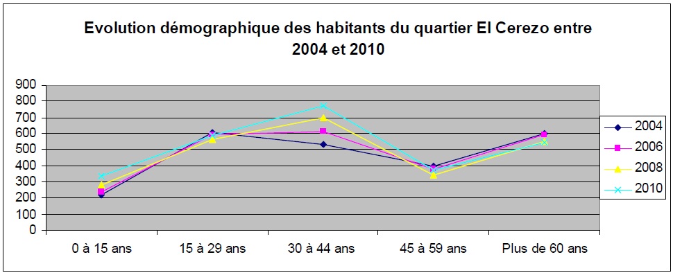 Graphique 7 : Evolution démographique des habitants du quartier El Cerezo entre 2004 et 2010