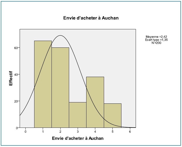 Lorsqu’on décortique, on remarque que sur la photo du magasin d’Auchan, 62,5% des personnes ont envie d’acheter. Cette moyenne situe l’envie entre plutôt d’accord et tout à fait d’accord.
