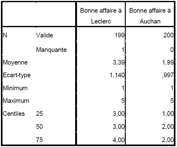 Que ce soit pour Auchan ou Leclerc, les résultats démontrent le manque de relation entre la perception prix sur la photographie était la reconnaissance d’enseigne par la suite.