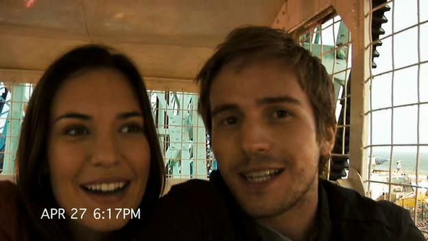 – Usage 4 : L’Omission. Ces regards-caméra sont en réalité des regards adressés au porteur. Le spectateur n’est à aucun moment visé, la caméra ne fait qu’acte de présence et fonctionne comme un masque que l’on a tendance à oublier (« tu as une caméra devant le visage » lance l’une des protagonistes de Cloverfield au porteur un peu distrait qu’elle essaye de reconnaitre). La caméra se trouve dans l’axe du regard entre deux personnages sans être véritablement considérée, de sorte qu’elle et le spectateur se retrouvent entre deux regards qui marquent leurs aspects superflus, qui les rejettent.