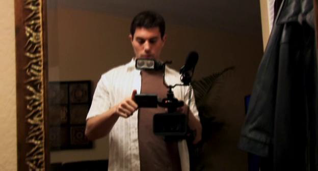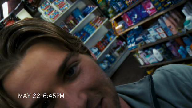 – Usage 2 : Le Testament. Le porteur prend à partie le spectateur, il n’y a plus d’oeil derrière la caméra mais la dénaturalisation du protagoniste subsiste puisque la conversation ne va que dans un sens. Même si le dialogue est impossible, le film met en place un cadre de communication (à la manière d’une discussion Skype), afin qu’il n’existe plus que celui qui parle et celui qui écoute. Souvent réalisé lorsque le porteur est en danger, le but est encore une fois de souligner la conscience que le personnage peut avoir du spectateur à venir, sans pour autant que cela se fasse sous le regard d’un autre qui tiendrait la caméra. On remarque par ailleurs que dans Paranormal Activity le regard n’est pas marqué mais la nature de l’image est la même que pour les autres exemples : elle suscite un rapport direct entre porteur et spectateur.